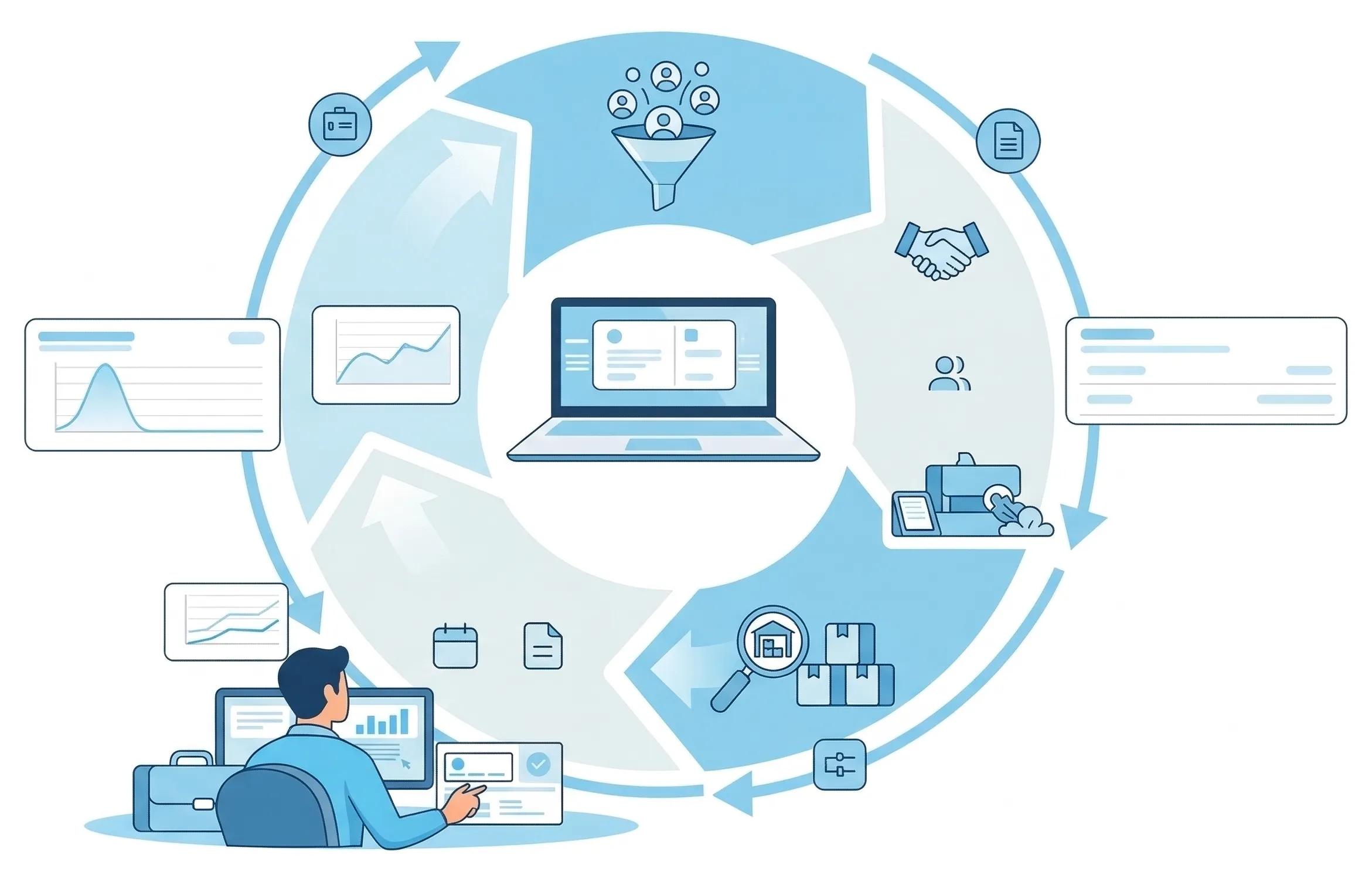 From lead tracking and sales billing to inventory management ERP and financial accounting, every transaction flows automatically across the system, ensuring real-time data synchronization, improved operational efficiency, reduced manual errors, and complete visibility for smarter and faster business decision-making, enhanced productivity, better collaboration, and seamless cross-departmental coordination.