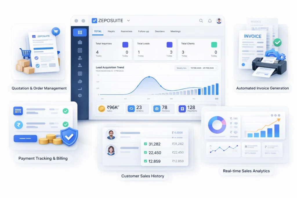 Zeposuite Sales & Invoice Management is not just a billing tool — it’s a complete system designed to streamline sales operations, automate invoicing, and improve financial control across your business.